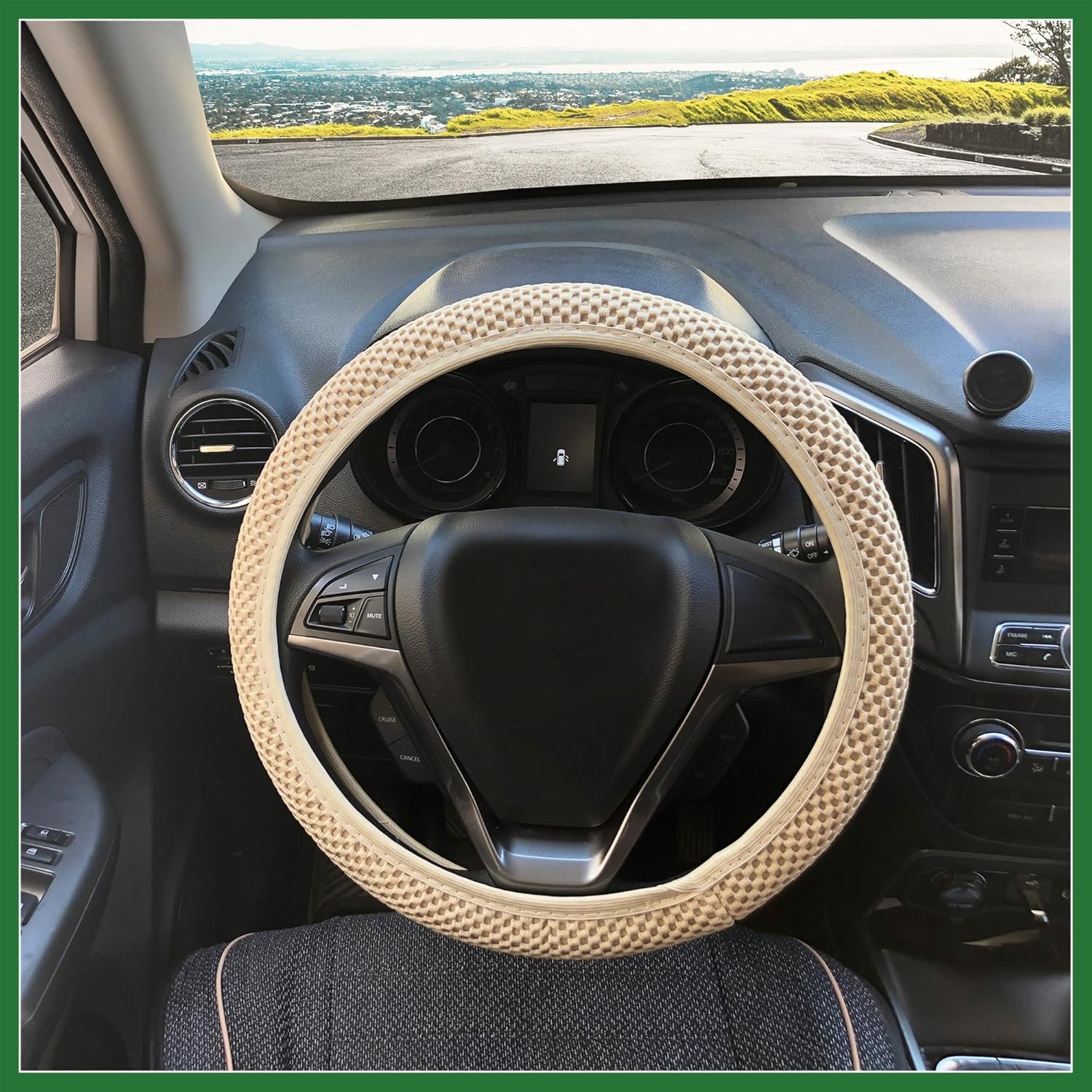 Universal 15″ Anti Slip Steering Wheel Cover Elastic Stretch Mesh Cloth Cover Accessory for Car Beige Long-Lasting